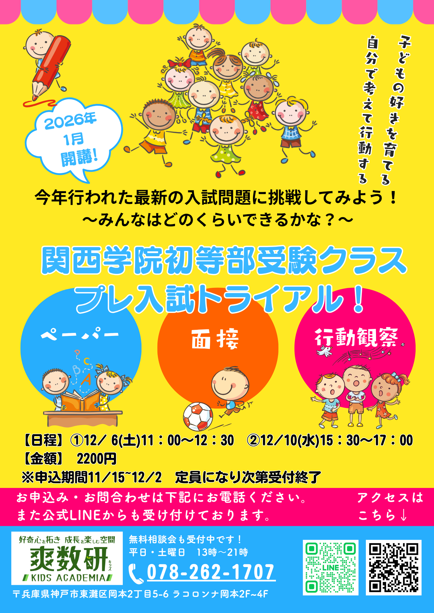 関西学院初等部受験クラスのプレ入試トライアル参加者募集中!